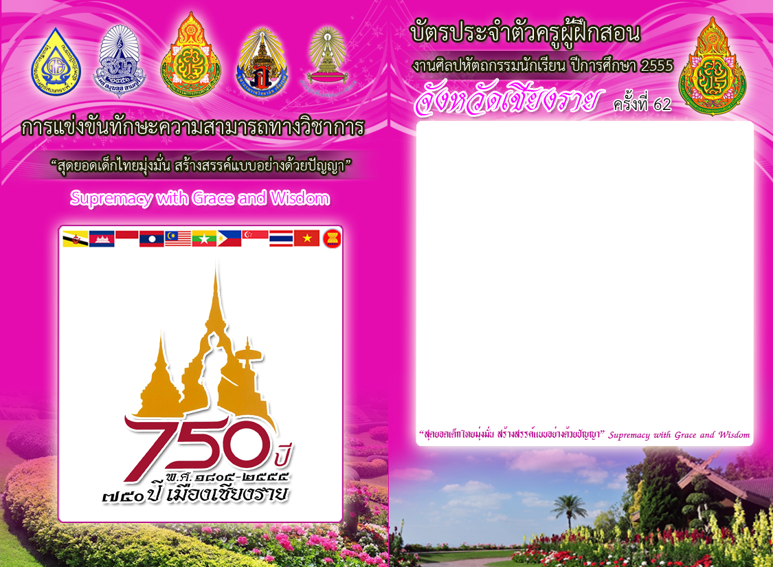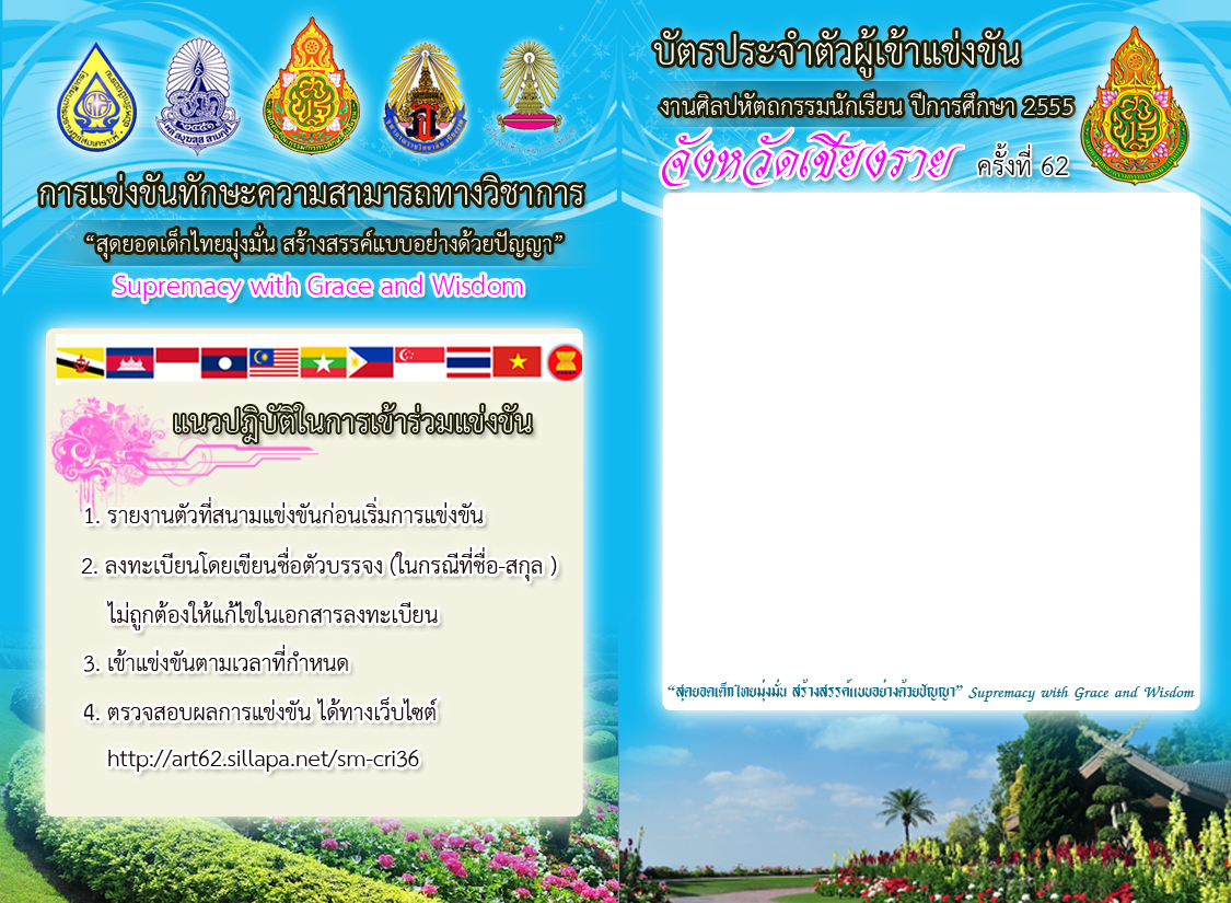 รูปแบบบัตรประจำตัว มีขนาดเท่ากับ (1125x825 pixels) ตัวอักษรควรวางรูปให้มีพื้นที่ว่างในการพิมพ์เนื้อหาส่วนที่เกี่ยวข้องกับการแข่งขัน